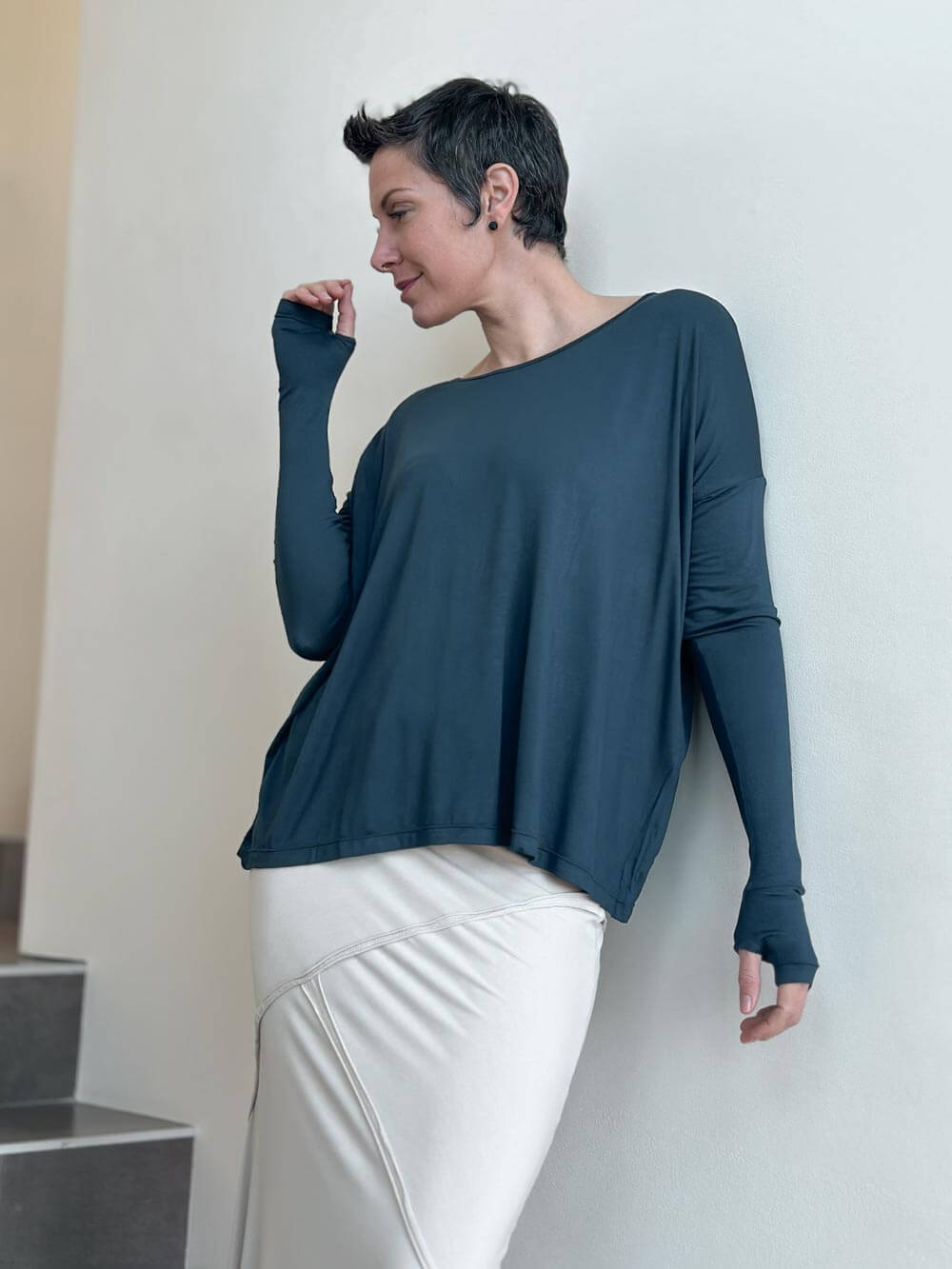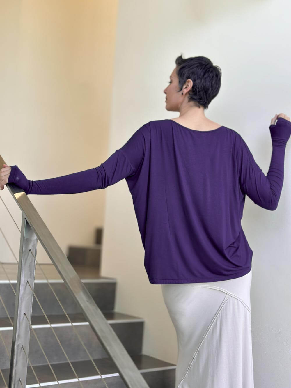 Our long sleeve Boyfriend Top is about to become your everyday go-to top. It has a relaxed fit and is made from a soft lightweight rayon jersey that drapes easily on all figures. This tee can also double as a shrug, making it an ideal travel top.