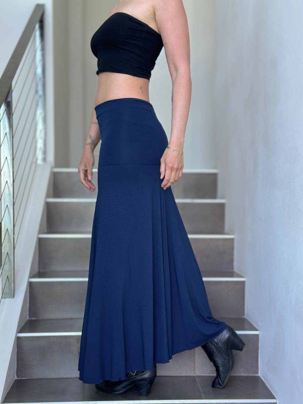 An ideal foundation layer for any outfit, our fully convertible full-length maxi skirt features a wide fold-over waistband and hourglass silhouette. Made from our mid-weight rayon jersey, it’s designed to be worn as a skirt or strapless dress.