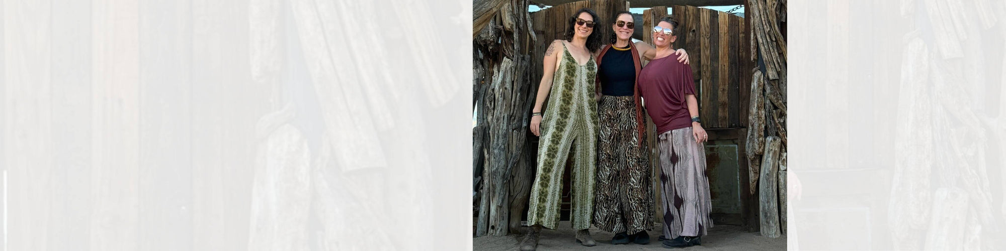 Explore our exclusive collection of clothing and accessories. Shop limited edition prints, individual ice-dyes, and subtle stripes made from hand-selected plant-based fabrics. You’ll find new and classic staples like our wide-leg flare pants, kaftan dresses, fingerless gloves, and more.