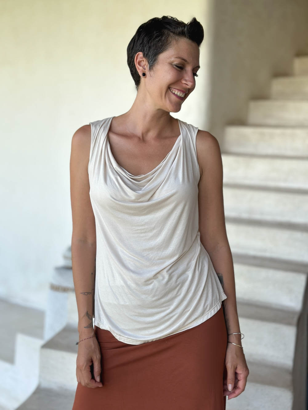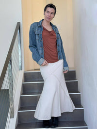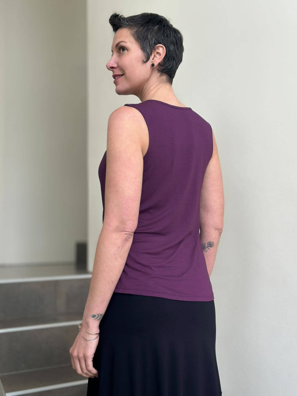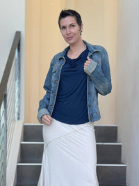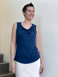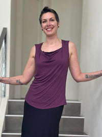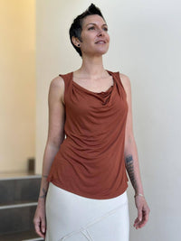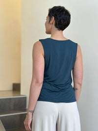 This top is lightweight, easy to wear, and undeniably soft. The fit is slightly relaxed making it oh-so comfy. Because the jersey fabric is thin it layers well under our long sleeve Flow Wrap Jacket. You can also wear this tank top on its own with skirts, pants, leggings, or jeans.