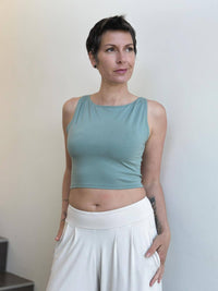With a high, elegant neckline and a fit that contours comfortably without clinging, the cropped length is perfect for showing off your waist without baring it all. Made from ultra-soft, breathable rayon jersey, it feels as good as it looks.