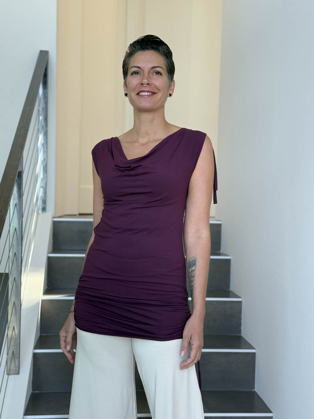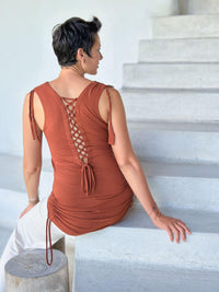 Our Lace Back Tunic features a crisscross back lace-up detail that is fully adjustable. Wear it over leggings or relax the side ruching to turn it into a mini dress. We designed this tunic to have a supportive fit with side ruching that creates a flattering silhouette.