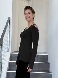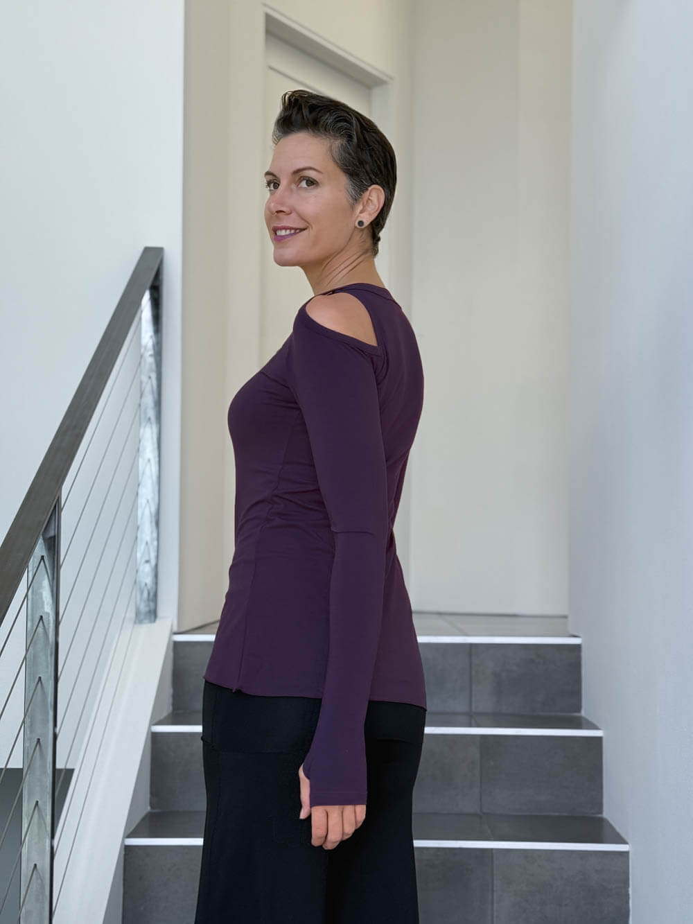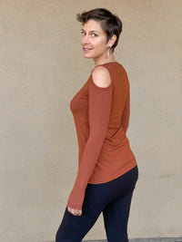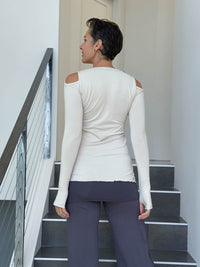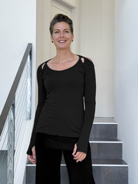 A touch of edge with everyday ease. Our Long Sleeve Peekaboo Top features delicate shoulder cut-outs that reveal just the right amount of skin while keeping your silhouette sleek and streamlined. Made from our soft, stretchy plant-based rayon jersey, this top offers a smooth, body-skimming fit with built-in thumbholes for added function and flair.